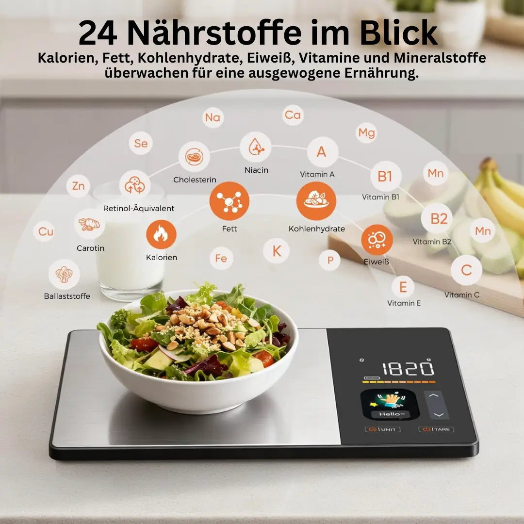 Erleben Sie unvergleichliche Präzision, Benutzerfreundlichkeit und umfassende Nährwertanalysen, die Ihren Koch- und Ernährungsstil erheblich verändern können. Treffen Sie fundierte Entscheidungen für Ihre Gesundheit und genießen Sie makellose Mahlzeiten.