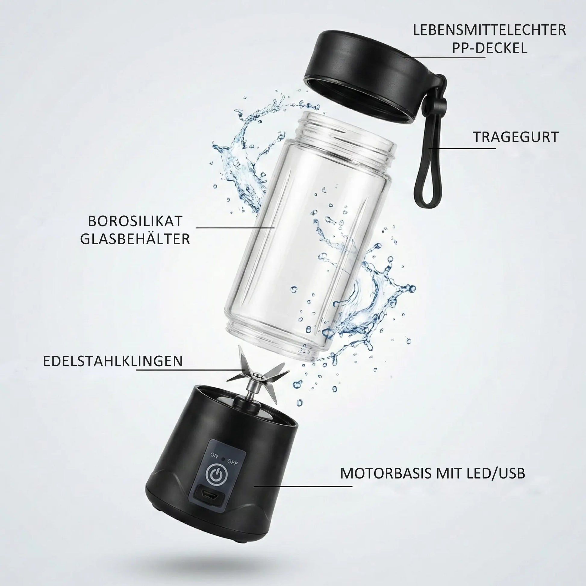 Antwort: Ja, der magnetische Sicherheitsschalter verhindert versehentliches Starten, solange der Deckel nicht richtig geschlossen ist. Das Material ist BPA-frei und sorgt für sicheres Mixen jeden Tag. - Frage 4: Was kann alles gemixt werden?