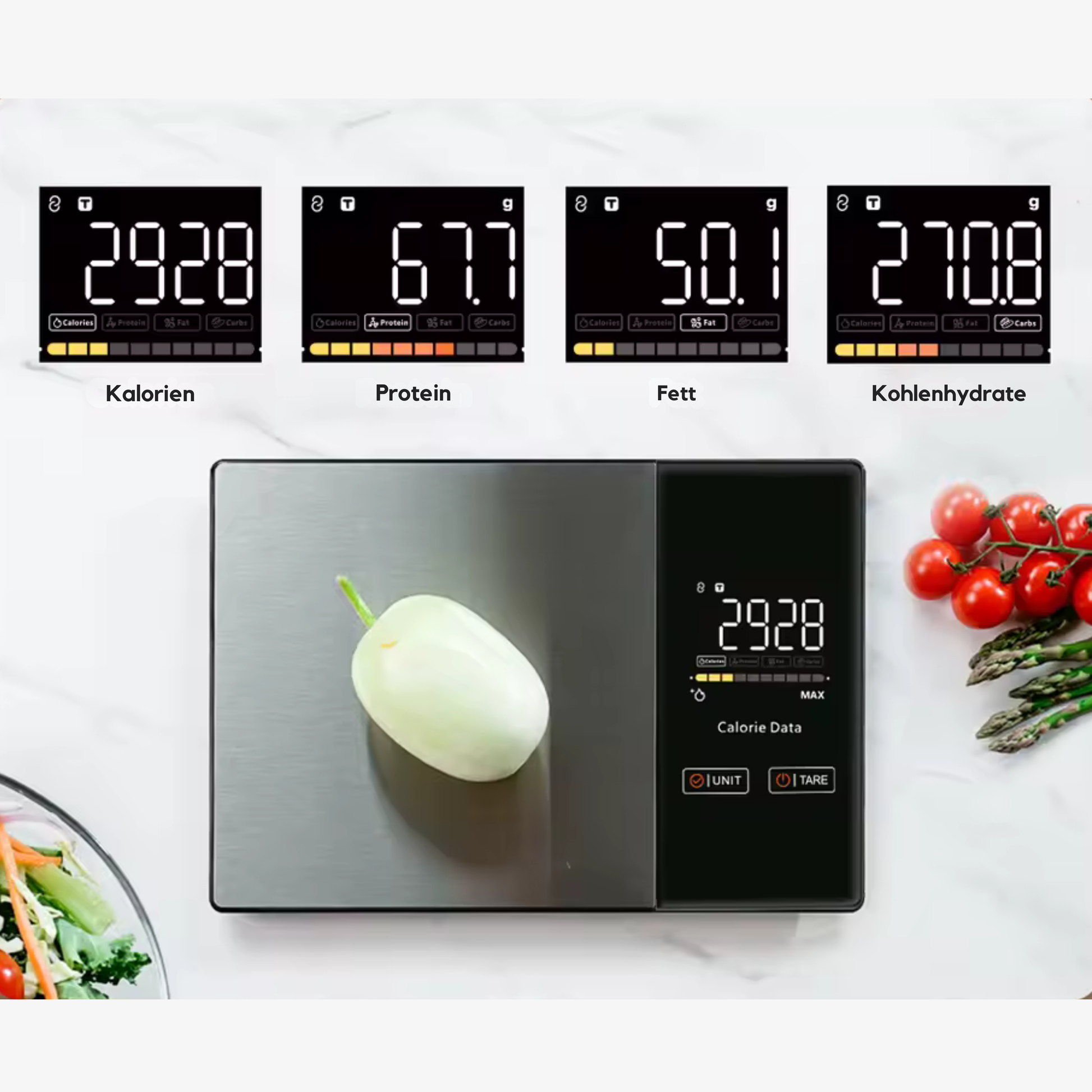 - Präzise & schnell: Exakte Messungen für Kalorien, Makros, Vitamine & Mineralstoffe.